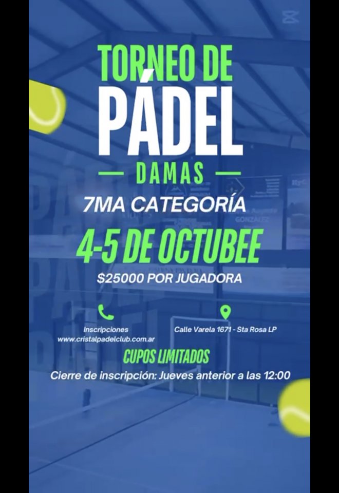 »» Evento: 7MA DAMAS »» Localidad: Santa Rosa »» Fechas: 04/10/2025 al 05/10/2025