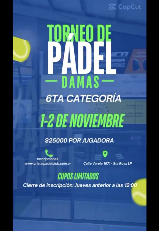 »» Evento: 6TA DAMAS »» Localidad: Santa Rosa »» Fechas: 01/11/2025 al 02/11/2025