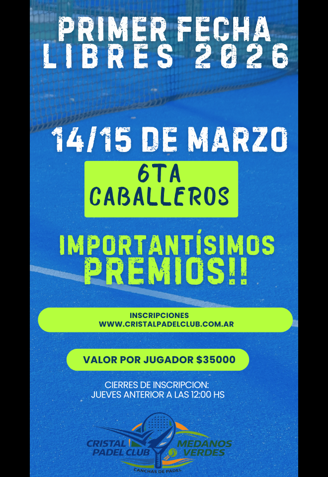 »» Evento: 1ER FECHA - 6TA CABALLEROS »» Localidad: Santa Rosa »» Fechas: 13/03/2026 al 15/03/2026